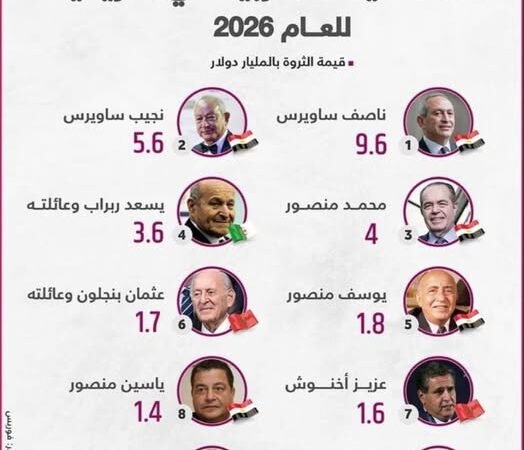 صنيف فوربس 2026: أغنى الشخصيات العربية في إفريقيا أصدرت مجلة Forbes تصنيفها لسنة 2026 لأغنى الشخصيات العربية في القارة الإفريقية، حيث كشفت الأرقام عن ثروات ضخمة يقودها رجال أعمال بارزون، أغلبهم من مصر والمغرب. 🏆 ناصف ساويرس في الصدارة يتصدر رجل الأعمال المصري ناصف ساويرس القائمة بثروة تقدر بـ 9.6 مليار دولار، ليؤكد مكانته كأغنى […]